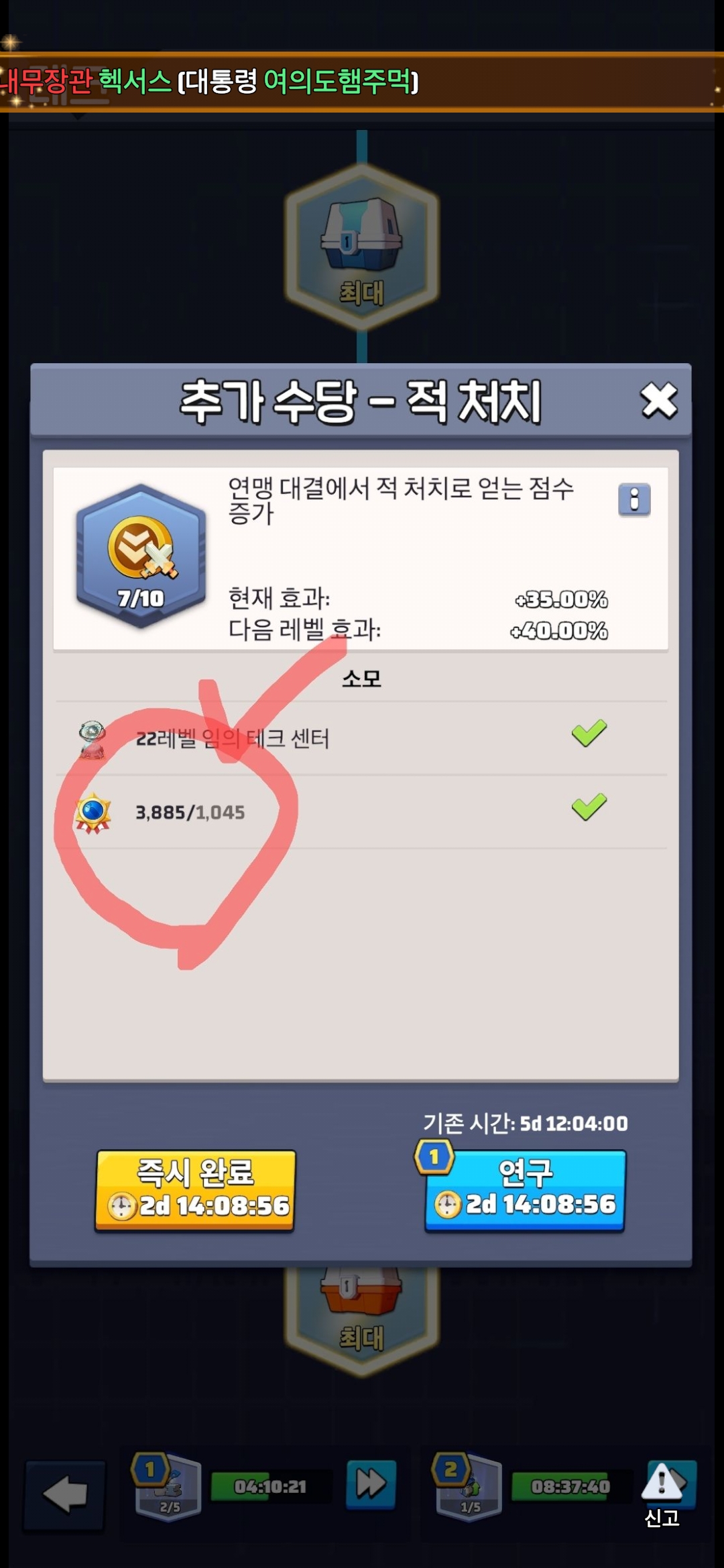 * 추가로 테크 올리기전에 국회에서 "과학장관" 타이틀 받고 돌리시기 바랍니다~~