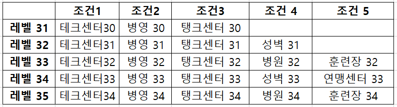 1~30 레벨은 아래 링크에서 확인하시고, 31~35레벨 조건입니다.