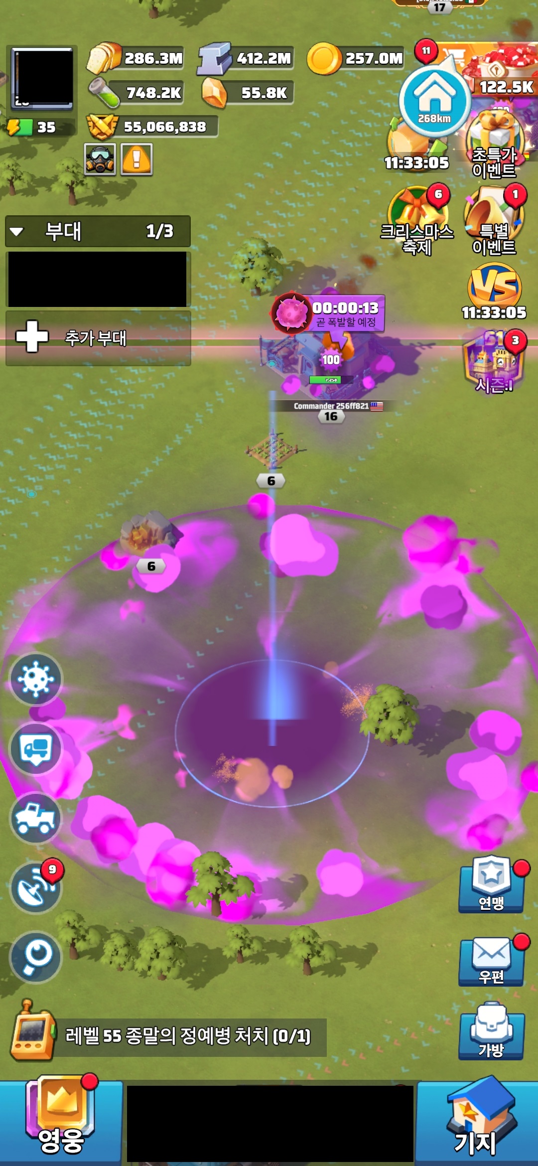 감염 카운트가 100이 넘어가면 일정 시간 후 폭발이 일어나는데, 폭발이 일어난 주위 기지들을 50에 감염수치를 가지게 됩니다.