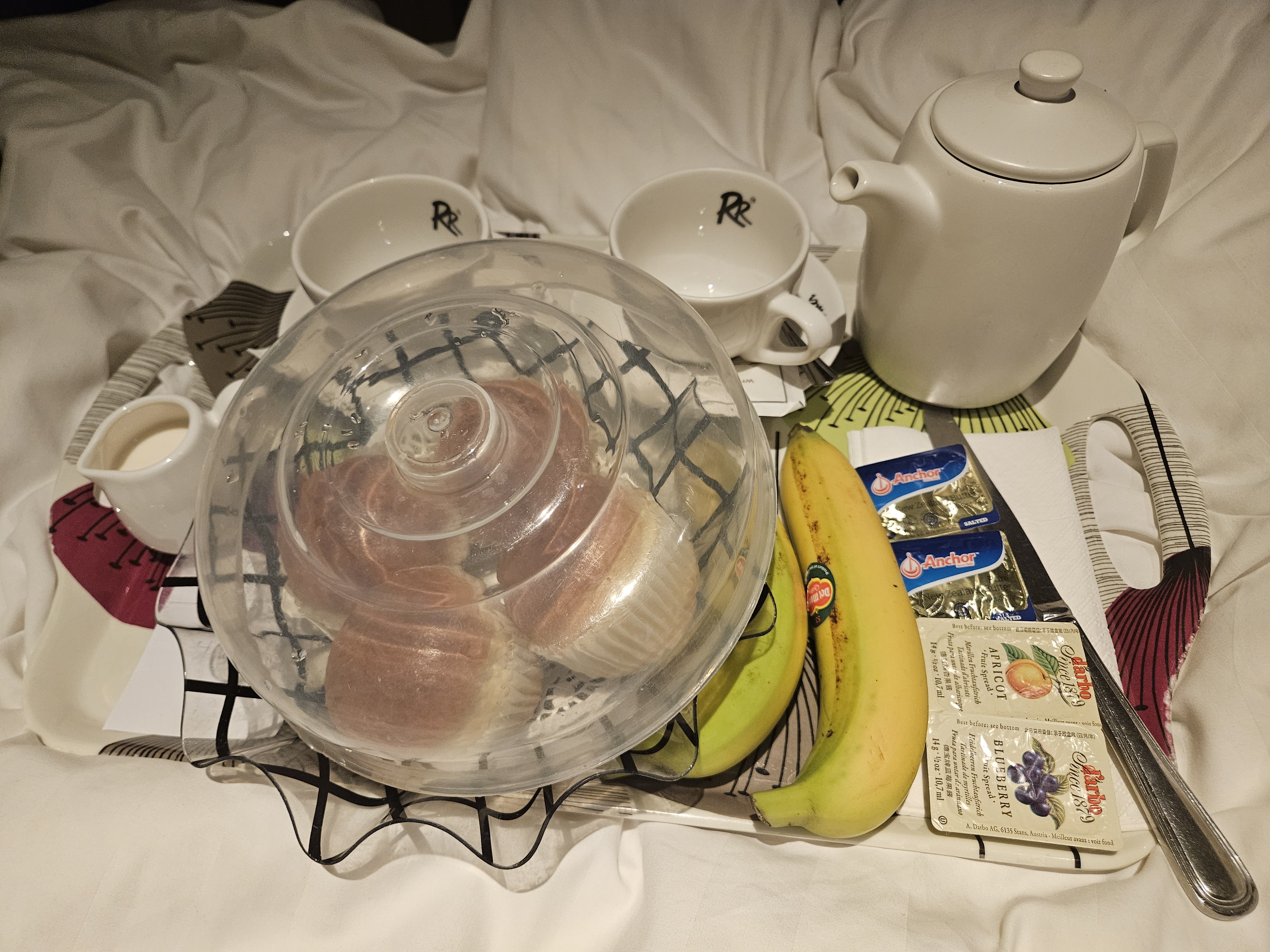 위 그림처럼 빵과 바나나, 홍차가 체크인 시 선택한 메뉴로 제공이되고, 마찬가지로 선택한 시간에 방으로 배달이 와서 편하게 즐길 수 있습니다.